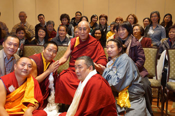His first engagement on arrival in Providence was a meeting with Lama Tsewang Tashi Rinpoche and members of the Da Nang Benevolence Association, many of whom are Chinese. He advised them of the need to be twenty-first century Buddhists; not content with having faith in the Buddha and his teaching, but understanding what the teaching means and how it can be put into effect on a practical basis. He also recommended studying the classic Indian Buddhist texts, which are written from a broader point of view that does not assume the reader is a Buddhist.