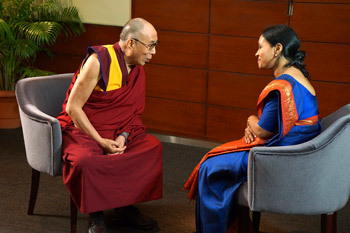 His Holiness the Dalai Lama during an interview with Indiavision News in Kochi, Kerala, on November 25, 2012. Photo/Jeremy Russell/OHHDL