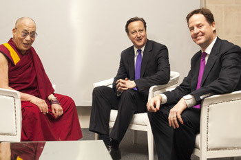 | His Holiness the Dalai Lama with Prime Minister David Cameron and Deputy