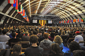 Middlebury College's Nelson Arena, venue for His Holiness the Dalai Lama's talk in Middlebury, VT, on October 12, 2012. Photo/Sonam Zoksang