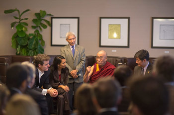 He mentioned that although it is often called the Roof of the World, Tibet is also referred to as the Third Pole, because of its significance as the source of rivers that provide water for about one billion people across Asia. For this reason Tibet’s fragile natural environment needs preserving, as does Tibet’s peaceful and compassionate culture. Education can further these goals. His Holiness noted with irony that communist Chinese leaders sending their sons and daughters to study in the US, which they otherwise criticise as an imperialistic power, is a recognition of the value of education.