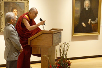 His Holiness the Dalai Lama speaking during his visit to the Muscarelle Museum of Art in Williamsburg, VA, on October 10, 2012. Photo/Jeremy Russell/OHHDL