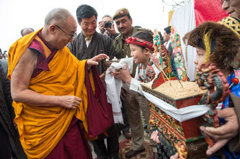 The local Indian MLA and Kalon for Home Affairs, Mrs Dolma Gyari spoke encouraging words. His Holiness was requested to present mementos to the various guests and dignitaries before being invited to speak. He greeted all present with “Tashi Delek.” He said,