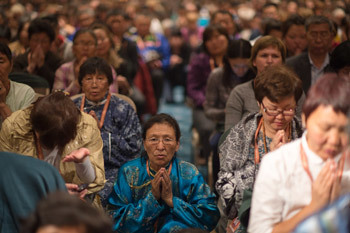 Members of the audience listening to His Holiness the Dalai Lama during the third day of His Holiness the Dalai Lama's four day teaching to Russian Buddhists in Delhi, India, on December 26, 2012. Photo/Tenzin Choejor/OHHDL