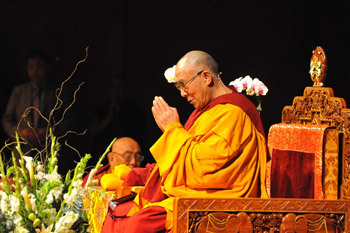 His Holiness the Dalai Lama during his teachings at Lincoln Center in New York City on October 21, 2012.