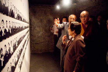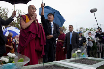 His Holiness the Dalai Lama visits the Okinawa's Himeyuri Peace Museum, dedicated to the hundreds of Japanese teachers and students who were posted on the island on November during World War II, on November 11, 2012.