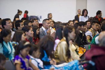Members of the Tibetan community from Austria and nearby European countries listening to His Holiness the Dalai Lama in Klagenfurt, Austria, on May 20, 2012.