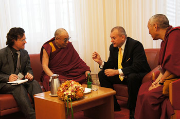 His Holiness the Dalai Lama meeting with Maribor Mayor Franc Kangler in Maribor, Slovenia, on May 16, 2012.