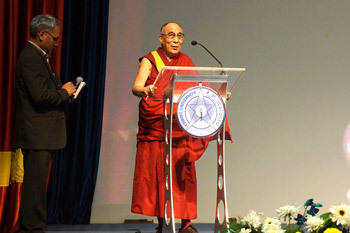 | His Holiness the Dalai Lama speaking at Christ Univesity in Bangalore, India, on November 26,2012. Photo/Jeremy Russell/OHHDL |