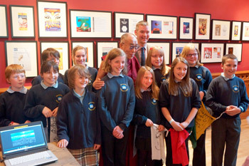 His Holiness was welcomed to Inverness by representatives of the Highland Council, the Provost of Inverness and representatives of the Inverness Inter Faith group. In the lobby of the Eden Court Theatre he met a group of school children who, emulating the Tibetan tradition had created their own prayer flags. They showed him a short video of their expedition to fly them from a nearby mountain top.