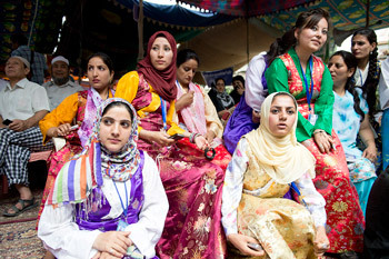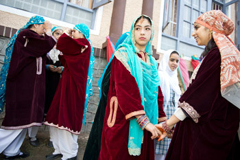 Students in traditional dress waiting to greet His Holiness the Dalai Lama at the Tibetan Public school in Srinagar, J&K state, India on July 14, 2012. Photo/Tenzin Choejor/OHHDL