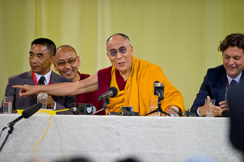 His Holiness the Dala Lama gestures during his meeting with members of the press in Milan, Italy, on June 27, 2012. Photo/Tenzin Choejor/OHHDL