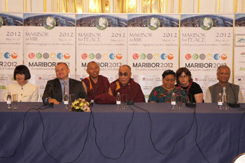 His Holiness the Dalai Lama and fellow Nobel Laureates at the Maribor Peace Conference "Why do we need dialogue and solidarity in the global crisis?" in Maribor, Slovenia, on May 17, 2012. Photo/Sami Rahim
