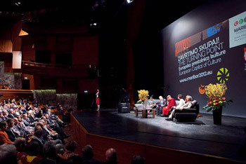The three Nobel Peace Laureates, accompanied by local Slovenian scholar Dr Lucka Kajfez Bogataj and moderator Dr Rudi Rizman, took their seats on the stage for a panel discussion on the theme, “Dialogue, Solidarity and Reconciliation”. Prof Muhammed Yunus opened with the suggestion that the very system of capitalism, of which European countries are prime exponents, is fundamentally flawed and profoundly needs changing. Rigoberta Menchu Tum echoed his remarks by recalling the Mayans' view that crises such as we are seeing now are a sign of decay. Not a decay that can be repaired, but one which prompts us to start again. She said we need the greater equality that will ensue once the present selfish system comes to an end.