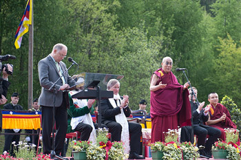 His Holiness the Dalai Lama speaking at the Rieftanzplatz Ground in Hüttenberg, Austria, on May 17, 2012.