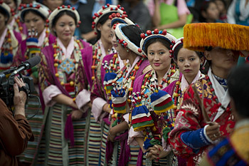 Traditional Tibetan song and dance being performed during celebrations honoring the 77th birthday of His Holiness the Dalai Lama in Dharamsala, India, on July 6, 2012. Photo/Tenzin Choejor/OHHDL |