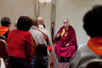 His Holiness the Dalai Lama with a group of Korean Buddhists in Tokyo, Japan on November 26, 2013.