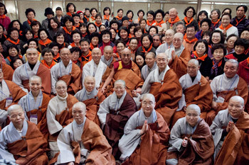 “Brothers and sisters from Korea, I’m very happy to have this chance to meet you again. China, Korea, Vietnam and Japan have traditionally been Buddhist countries. Although in any particular country there may also be other faiths you have many Buddhist temples and monasteries, so you have an understandable interest in Buddhism.”