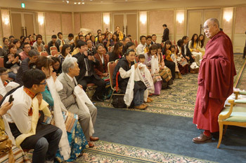 His Holiness the Dalai Lama speaking to a group of Tibetans living in Japan in Tokyo, Japan on November 26, 2013. Photo/Jeremy Russell/OHHDL