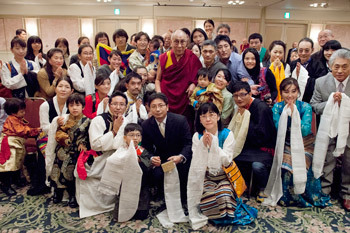 His Holiness the Dalai Lama with members of the Tibetan community living in Japan in Tokyo, Japan on November 26, 2013. Photo/Office of Tibet, Japan
