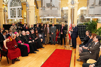 “Your Holiness, we have much in common. We have different histories and different culture, but what we share is that we represent minority populations facing similar problems. There are 164 countries in the world where minorities live, and while many accord them their rights, others do not show such respect. They try to dominate and suppress their minorities, often resorting to the use of force and violence. Ultimately, it is the non-violent approach that succeeds, because it is peaceful and friendly. Your Holiness has become an international ambassador for non-violence and support for minorities, and we are pleased to welcome you here again.”