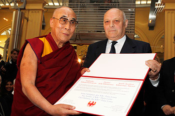 He declared that South Tyrol is like a laboratory conducting an experiment to ensure the survival of minority populations. The Minority Award had been set up to shed light on the problems minorities face. This year, though he said, the light that it might have shone on the situation of Tibetans is like a candle in comparison to His Holiness’s efforts. Nevertheless, the message that South Tyrol wants to send is that the rights of minorities should never be surrendered and that they will work to remind others of this.