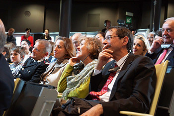 Members of the audience listening to His Holiness the Dalai Lama speaking at the European Academy in Bolzano, South Tyrol, Italy, on April 10, 2013. Photo/Jeremy Russell/OHHDL