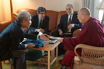 Madison, Wisconsin, USA, 15 May 2013 - Inspiration for convening this discussion of well-being in relation to global health and happiness arose when Richard Davidson, Chair of the Center for Investigating Healthy Minds and Jonathan Patz, Director of the Global Health Institute, both at the University Wisconsin-Madison, were visiting His Holiness the Dalai Lama in India. He showed great interest in participating in such a conversation.
