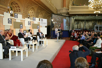 When a question from the floor asked how to impel change, Karel Schwarzenberg said we should not forget the importance of perseverance. Yang Jianli raised the question of the renewal of China’s membership of the UN Human Rights Council. Gareth Evans asked, “What do you do? Exclude them or keep them in?” His Holiness replied that there are people within China involved with campaigning for human rights.