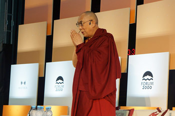 After lunch, he greeted a group of physically challenged Czechs who play music together as he was on his way to the Tipsport Arena, venue for his public talk. His first words from the stage, having greeted the audience of more than 6000, were in tribute to his late friend and founder of Forum 2000, President Vaclav Havel.