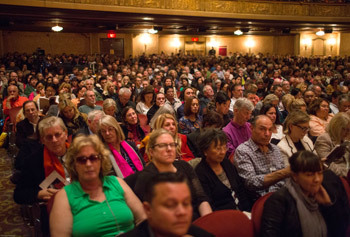 Members of the audience listening to His Holiness the Dalai Lama's during the second day of his teachings at the Beacon Theater in New York, NY, USA on October 19, 2013. Photo/Robert Nickelsberg