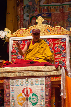 Tomorrow His Holiness has agreed to give an empowerment concerning The Buddha Establishing the Three Pledges, during which he will also conduct the ceremony for generating the awakening mind.