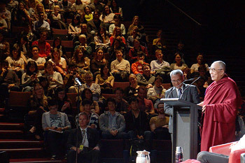In answering questions from the audience, His Holiness reiterated that our education system should involve nurturing basic human qualities like warm-heartedness, which scientists show also contributes to our physical well-being. He pointed out that people who are insensitive to animals are often rough with human beings too. He sympathised with young people who do not always take their education seriously, recalling his own early teenage years when he had little interest in studying. This is something he regrets now that he appreciates the importance of education.