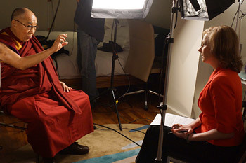 His Holiness the Dalai Lama being interview for ABC Television’s 730 Report in Sydney, Australia, on June 13, 2013. Photo/Jeremy Russell/OHHDL