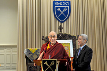 | His Holiness the Dalai Lama speaking to students at Emory University in Atlanta, Georgia on October 9, 2013. Photo/Sonam Zoksang |