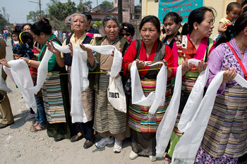 Salugara, West Bengal, India, 27 March 2013 - After rain during the night and early morning, His Holiness decided to travel from Gangtok to Salugara by road instead of taking a helicopter. Before departing, he spoke to more than 65 members of the Gangtok Tibetan community at the Circuit House where he was staying. The Chief Minister of Sikkim, Dr Pawan Chamling came to wish His Holiness farewell. Before he got into his car, a guard of honour presented arms in the pouring rain. All the way through Gangtok and in the towns and villages on the road down to the state border people from all walks of Sikkimese life, school children and adults young and old, lined the road eager to see His Holiness as he passed.
