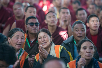 Some of the over 30,000 people attending the fourth day of teachings listening to His Holiness the Dalai Lama at Sera Jey Monastery in Bylakuppe, Karnataka, India on December 28, 2013. Photo/Tenzin Choejor/OHHDL