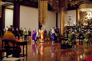 His Holiness the Dalai Lama observing prayers conducted at the Zojoji Temple in Tokyo, Japan on November 19, 2013. Photo/Office of Tibet, Japan