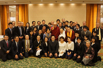 His Holiness the Dalai Lama with participants in a meeting with Japanese scholars of Tibetan Studies in Tokyo, Japan on November 19, 2013. Photo/Jeremy Russell/OHHDL