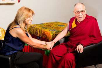 Mexico City, Mexico, 14 October 2013 - His Holiness the Dalai Lama began a final busy day of engagements in Mexico City, once again at the Arena Ciudad de Mexico, by giving an interview to Adela Micha of Televisa, Mexico’s largest television network. She began by telling her viewers that she was speaking in person to the Dalai Lama, a person many regard with great awe and asked him how he sees himself and he answered: