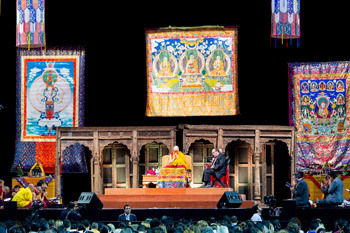 A view of the stage at the Arena Ciudad de Mexico during His Holiness the Dalai Lama teachings in Mexico City, Mexico on October 14, 2013. Photo/Oscar Fernandez
