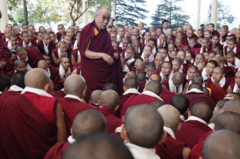 Thekchen Chöling, Dharamsala, India, 3 November 2013 - This morning His Holiness the Dalai Lama met briefly with nuns from eight nunneries who for the last month have been taking part in the Jang-Gun-Chö, the Great Winter Debate, held this year at Dolma Ling Nunnery. He began: