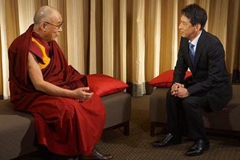 Picking up on the theme of suicide in response to bullying, the interviewer asked for His Holiness’s thoughts about the more than 100 self-immolations that have taken place in Tibet since 2009. His reply was that these events are very sad, but that these people are not doing it because they are drunk or burdened by family problems; they find themselves living in an atmosphere of fear. People who are prepared to give up their own lives would be capable of harming others, but they deliberately avoided that. He remarked: