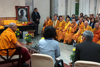 His Holiness hosted a lunch at the State Guest House, where he was staying, for 15 delegates to the International Buddhist Sangha Conference from a variety of Buddhist traditions, including Sangharajas and their representatives from Bangladesh, Burma and Thailand.