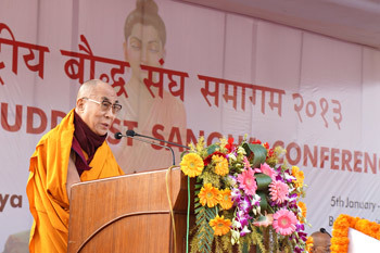 “I am pleased that the State of Bihar, in conjunction with the Bodhgaya Temple Management Committee, has convened this conference. All our religious traditions teach about love and compassion, but the important thing is for us to put these instructions into effect, otherwise we risk falling prey to hypocrisy. We need to maintain faith in our own tradition, while cultivating respect for others. If, as Buddhists, we follow what the Buddha taught sincerely, we will naturally be of service to our human brothers and sisters.”