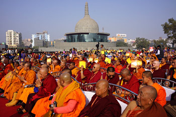 | Delegates attending the International Buddhist Sangha Conference held at Buddha Smriti Park in Patna, Bihar, India, on January 5, 2012. Photo/Jeremy Russell/OHHDL |