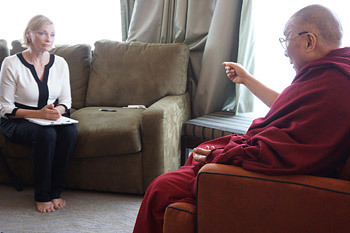 Portland, Oregon, USA, 11 May 2013 - His Holiness the Dalai Lama began his fourth day in Portland, Oregon by giving a short interview to be included in an environmental documentary being created by Maitripa College. He expressed a concern not just for those alive today, but for future generations, suggesting that ecological problems may not affect us, but they will affect them if we don’t act. Asked how compassionate thought can change the world, he said: