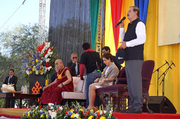 Former Mexican President Vincente Fox introducing His Holiness the Dalai Lama before his talk in Leon, Guanajuato, Mexico on October 15, 2013. Photo/Jeremy Russell/OHHDL