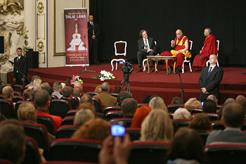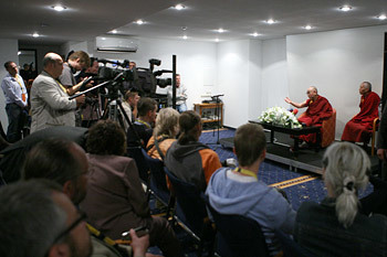 “I’m very happy to be here for my third visit to this very pleasant city. Wherever I go I try to generate awareness of the sameness, the oneness of humanity. And as a Buddhist monk, I try to foster inter-religious harmony. All religions teach about compassion and to practice it we need tolerance and forgiveness which serve to protect our practice. Regarding Tibet, I retain a responsibility to try to preserve Tibetan Buddhist culture, which is a culture of peace and compassion.”