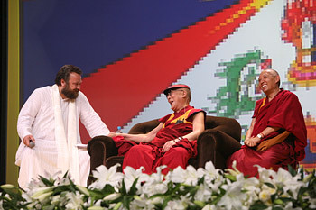 Among the questions from the audience was one about fear. His Holiness said that the fear that makes us run from a mad dog is useful and necessary, whereas fear rooted in mistrust is unhelpful and needs to be overcome. To another question about why there seem to be so many narrow minded, short-sighted, educated people, he answered that it is because of a lack of inner and moral values. Also, he remarked, it can occur when religious faith is too strong.
